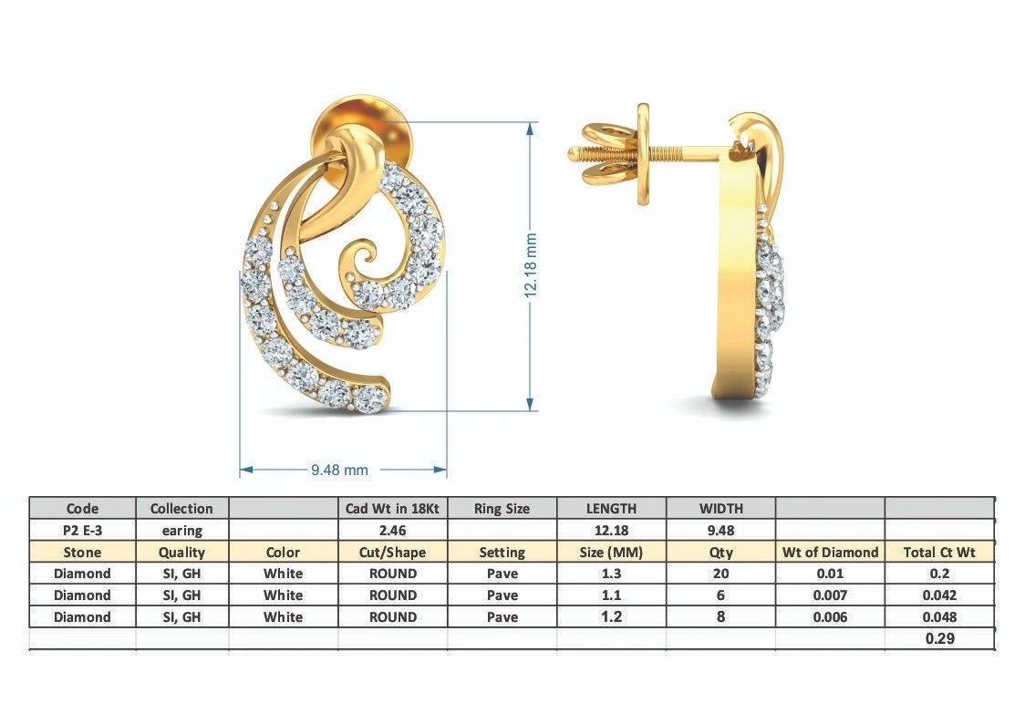 STUDS EARRING 3D MODEL CAD FILE FOR WOMEN’S JEWELLERY...