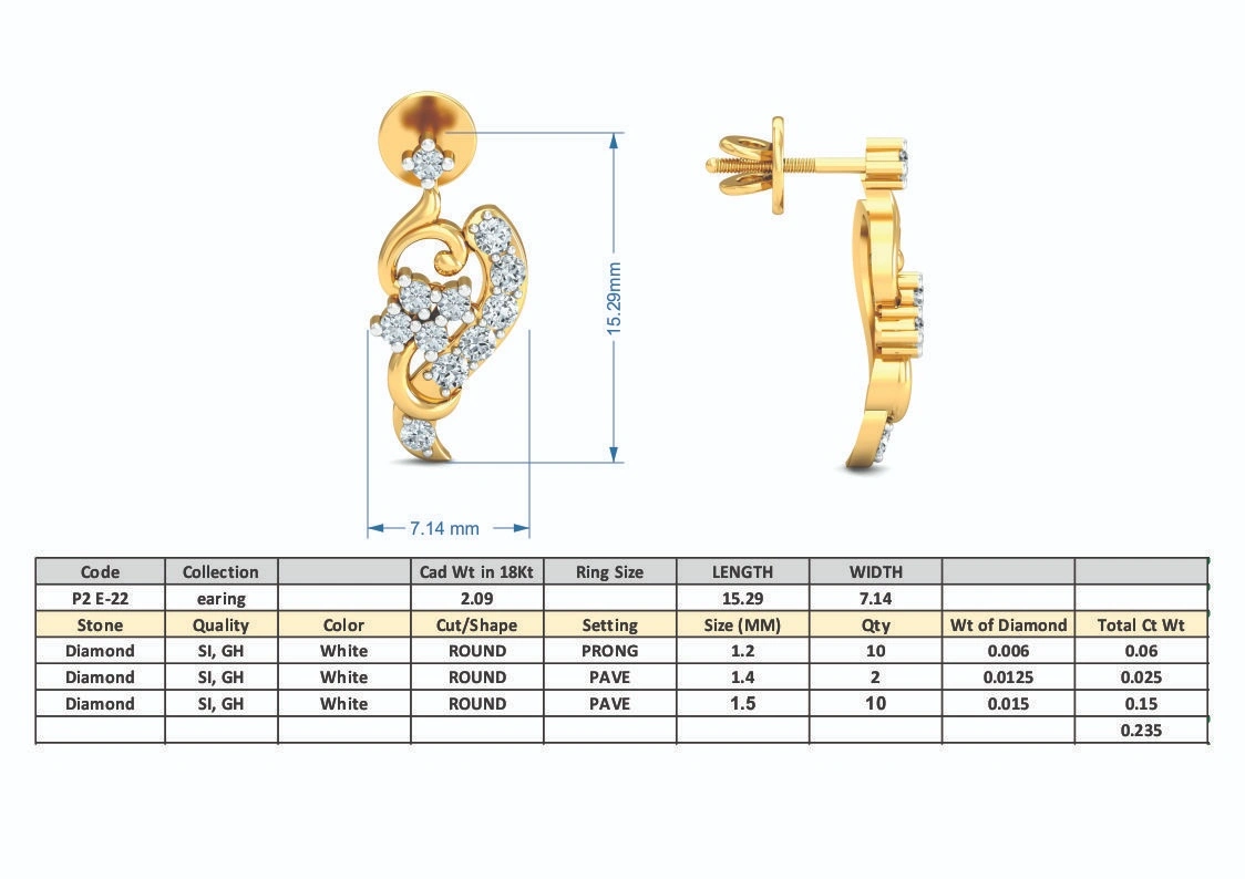 Gold Wt.:-           2.09 gm (18K) Approx.
